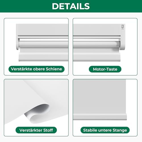 Unser elektrisches Verdunklungsrollo besteht zu 100% aus hochwertigem Polyester, das auf der Rückseite mit einer speziellen Thermobeschichtung versehen ist. Diese innovative Beschichtung sorgt nicht nur dafür, dass Ihre Wohnräume im Sommer kühl bleiben, sondern blockiert auch effektiv kalte Zugluft im Winter. Zudem bietet das Rollo einen vollständigen Verdunkelungseffekt, sodass Sie jederzeit eine gemütliche und ruhige Atmosphäre genießen können.