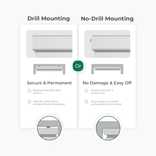 • Flexible Installation: Wählen Sie zwischen bohr- und bohrfreier Montage, was die Anbringung einfach und ideal für Mieter macht, die Rückstandsfreiheit wünschen.