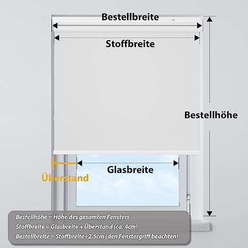 Gestalten Sie Ihr elektrisches Verdunklungsrollo nach Maß! Wir bieten eine Vielzahl an Optionen, um Breite und Höhe (von 45 bis 120 cm in der Breite und von 50 bis 200 cm in der Höhe) individuell anzupassen. Klicken Sie auf “Anpassen”, um Ihren bevorzugten Stofffarbe, Breite, Höhe sowie Steuerungssystem und Sprachsteuerung auszuwählen.