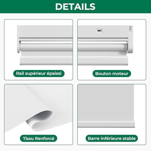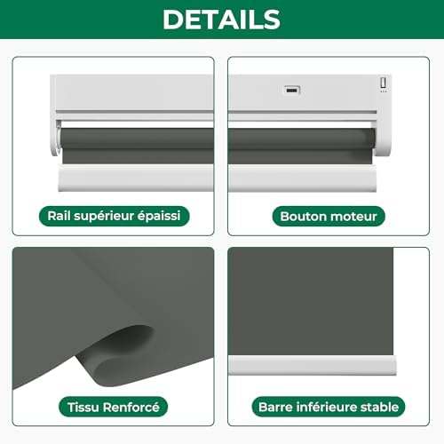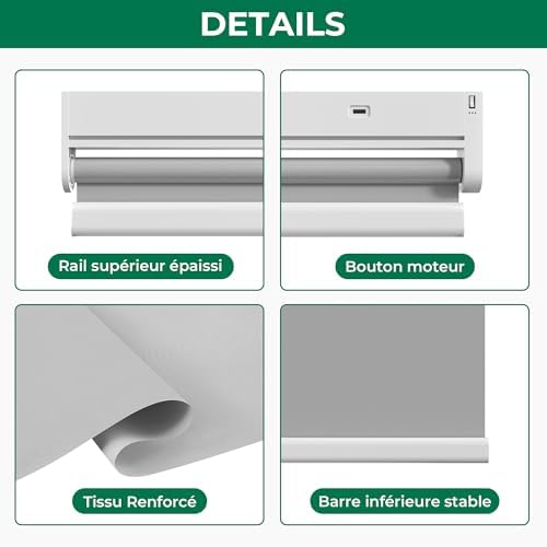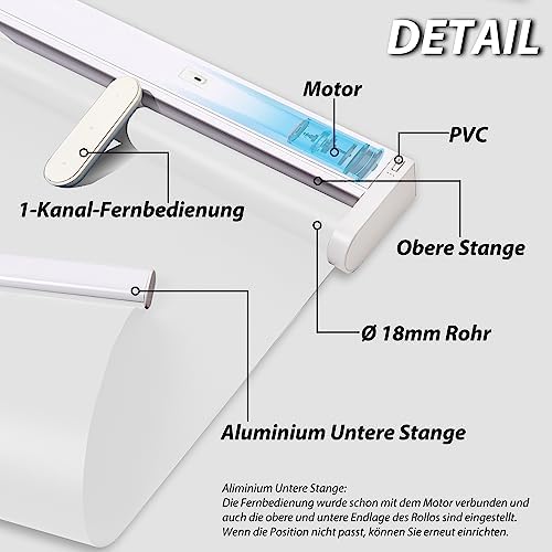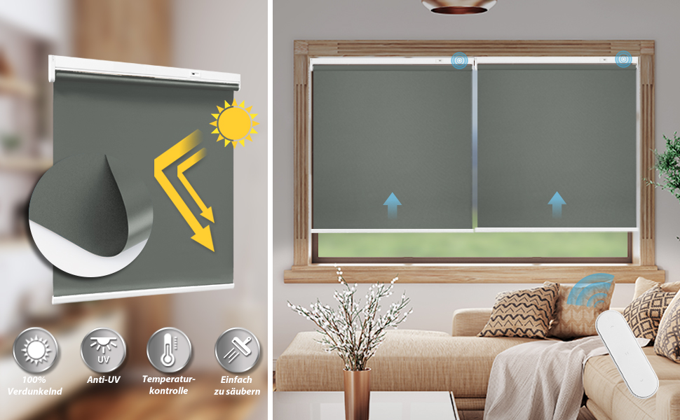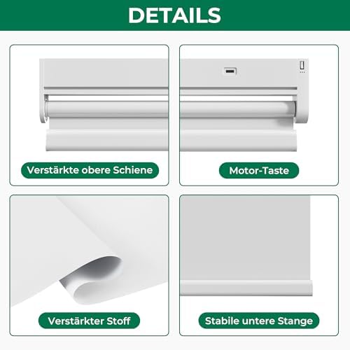 Entdecken Sie unser vielseitiges elektrisches Verdunkelungsrollo, das mit seiner 100%igen Verdunkelungsfähigkeit für optimalen Lichtschutz sorgt. Der hochwertige Stoff besteht aus 100% Polyester und ist auf der Rückseite beschichtet, um eine vollständige Privatsphäre zu gewährleisten. Dieses Produkt ist ideal für unterschiedlichste Räume, darunter Küche, Bad, Arbeitszimmer und Schlafzimmer, und schafft eine angenehme Umgebung für jeden Anlass.