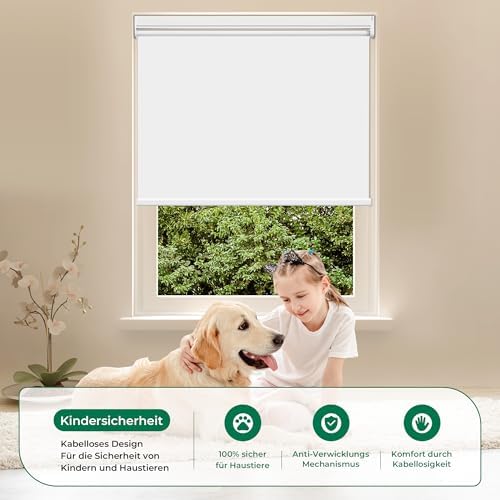 Unser elektrisches Verdunklungsrollo ist besonders kinderfreundlich: Es kommen keine Schnüre zum Einsatz, wodurch potenzielle Erstickungsgefahren ausgeschlossen werden. Dies macht das Rollo ideal für verschiedene Räume in Ihrem Zuhause – egal ob Küche, Keller, Bad oder Schlaf- und Kinderzimmer.