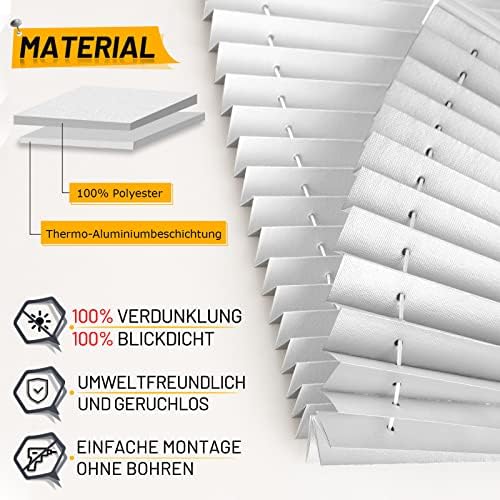 Unser Plisseerollo besteht aus hochwertigem Polyester, das für seine Langlebigkeit und Widerstandsfähigkeit bekannt ist. Die Rückseite ist mit einer umweltfreundlichen und geruchlosen Aluminiumbeschichtung versehen, die nicht nur optisch ansprechend ist, sondern auch für zusätzliche Funktionalität sorgt. Die Pflege des Rollos gestaltet sich denkbar einfach: Es kann problemlos mit einem Möbelpinsel oder einer Fugendüse abgesaugt oder mit einem feuchten Tuch abgewischt werden.