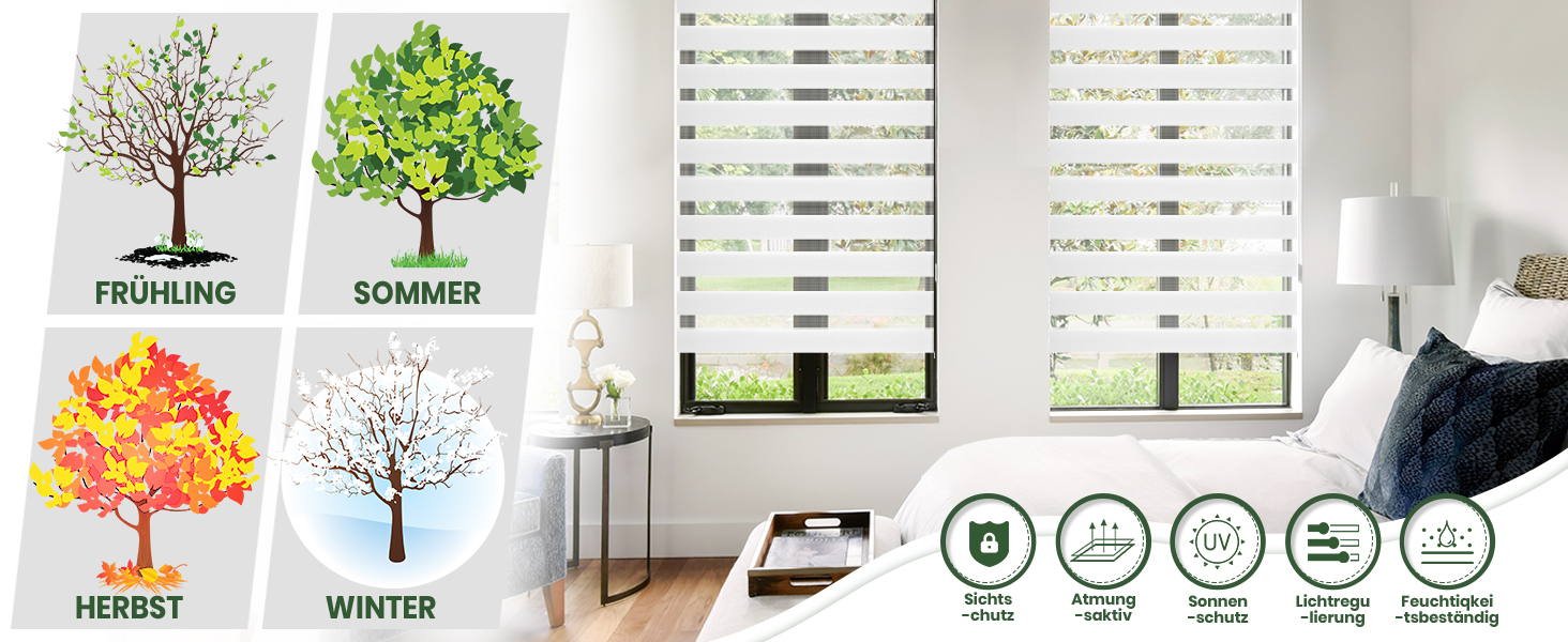 Dieses Doppelrollo bringt nicht nur frische Farben in Ihre Räume, es ist auch äußerst praktisch und ästhetisch. Es eignet sich ideal für Schlaf- und Kinderzimmer, Badezimmer, Küchen, Wohnräume, Büros sowie Balkone und sorgt für einen stilvollen Look. Mit seinem zeitlosen Design passt es zu jedem Einrichtungsstil und erfüllt sowohl funktionale als auch dekorative Anforderungen.