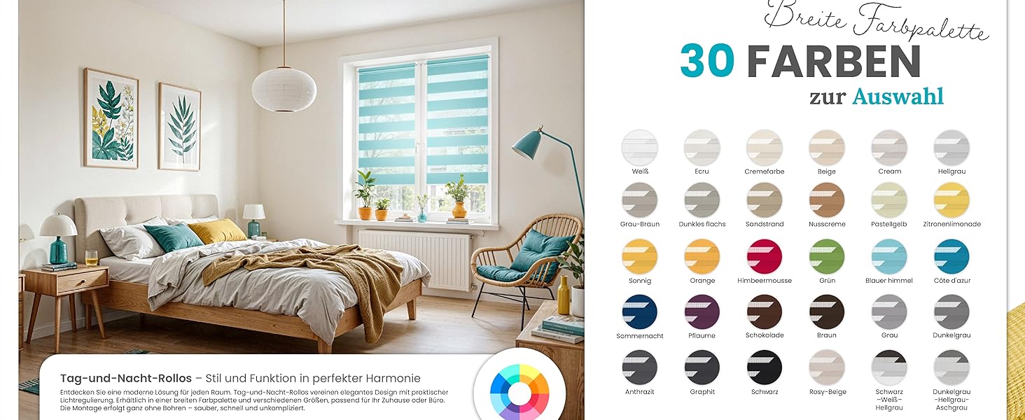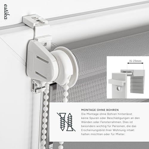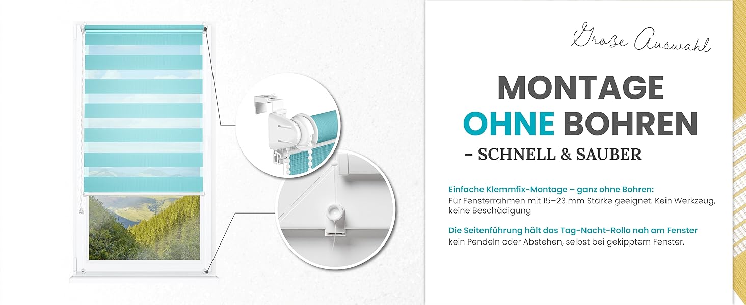 Entscheiden Sie sich für unser Doppelrollo ohne Bohren und genießen Sie einen flexiblen und stilvollen Sonnenschutz, der Ihren Wohnraum aufwertet!