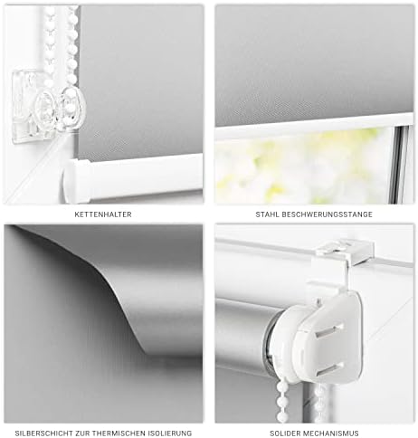 - 1x Thermorollo ohne Bohren in der Größe 135 cm x 150 cm (Stoffbreite 135 cm) in elegantem Grau