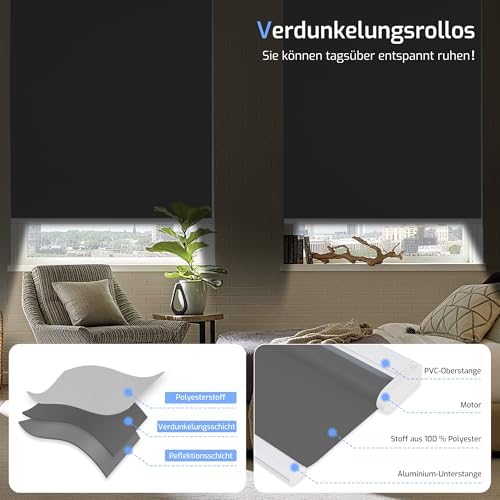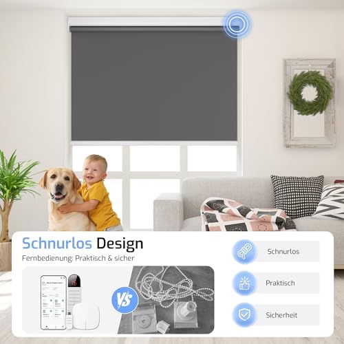 Grandekor Elektrische Rollos Innen – Verdunklungsrollo 120x200cm mit Fernbedienung & leisen Motor, idealer Sichtschutz f
