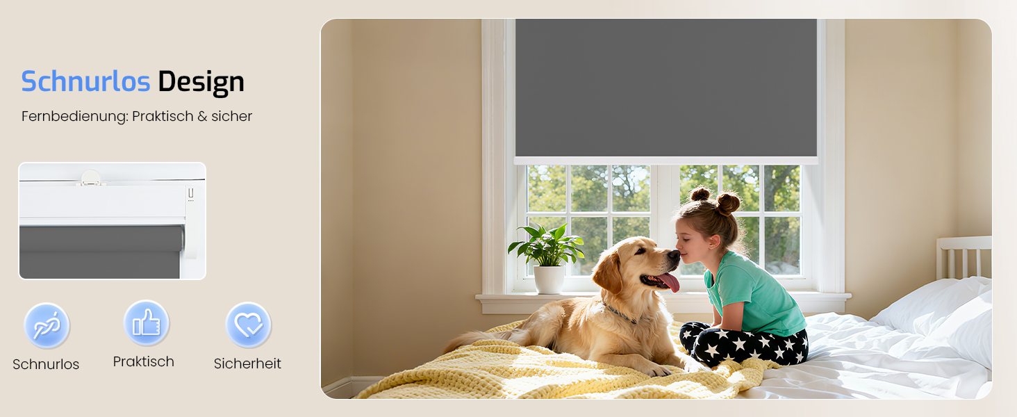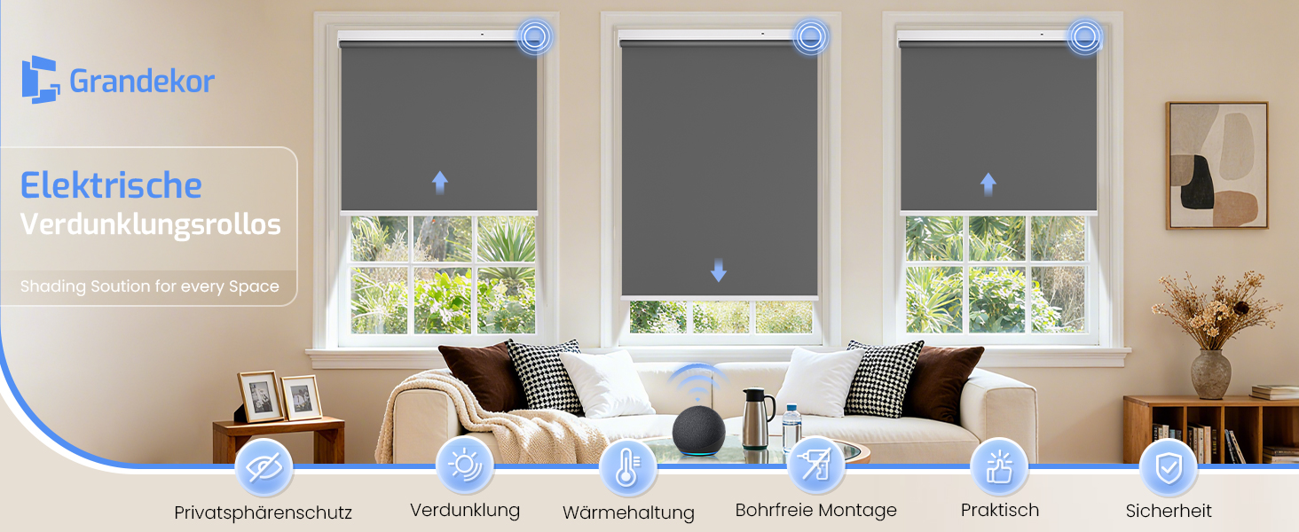 Entscheiden Sie sich für das elektrische Rollo von Grandekor und erleben Sie den einzigartigen Komfort und die zeitgemäße Funktionalität für Ihre Wohnräume!