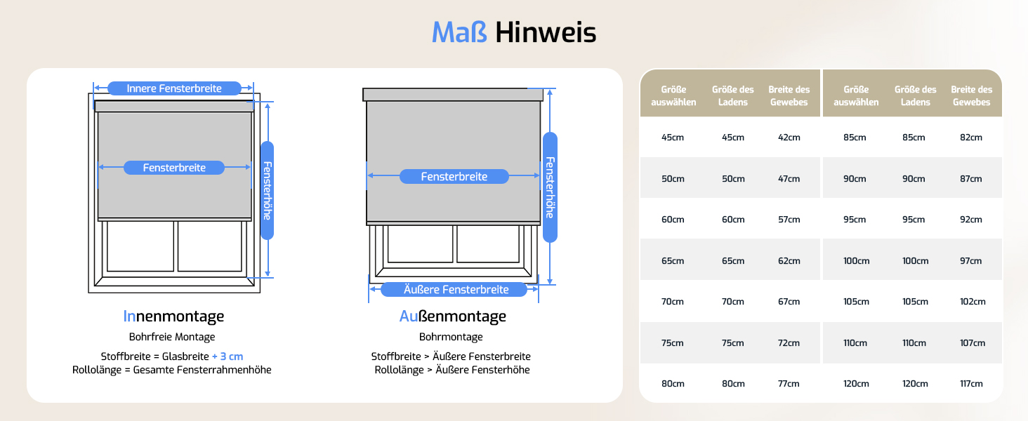 • Individuelle Größenanpassung: Präzise Anpassung für einen perfekten Sitz, einfach bei der Bestellung die richtige Breite bestimmen – für optimale Passform an Fenstern.