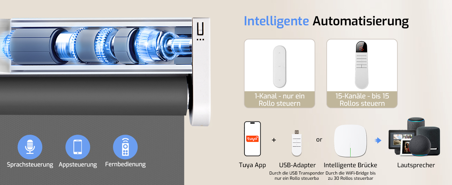 • Moderne Smart-Technologie: Steuerung des elektrischen Rollos über Sprachbefehle mit Alexa oder Google Assistant – ideal für technikaffine Nutzer.