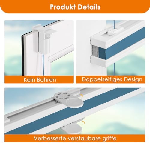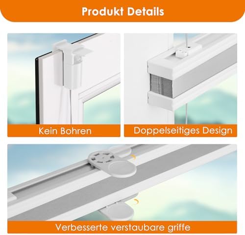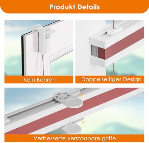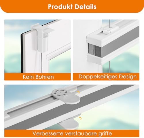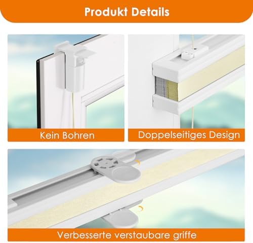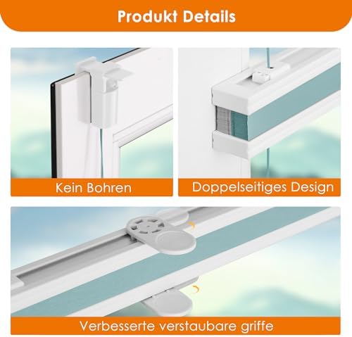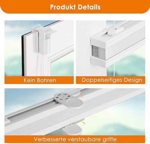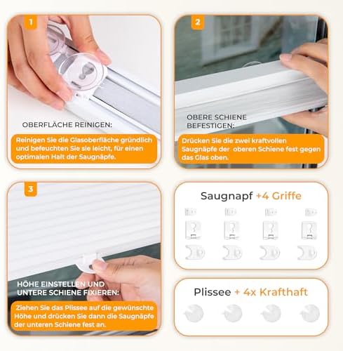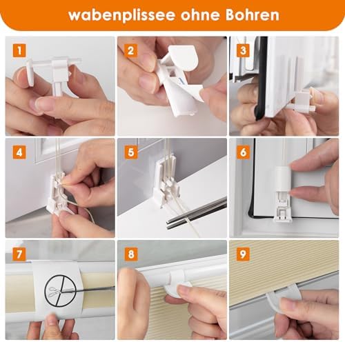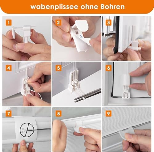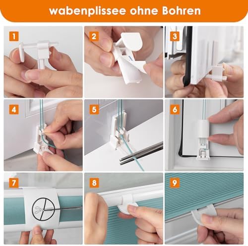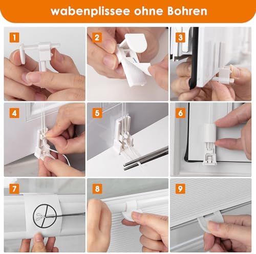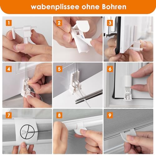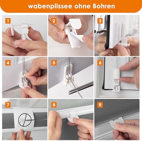 Die Montage war nie einfacher! Mit Hilfe der vier mitgelieferten Klemmen können Sie das Wabenplissee schnell und unkompliziert an Fenstern oder Türen befestigen. Die flexiblen Klemmträger sind individuell einstellbar und passen sich problemlos an Fensterflügelbreiten von 10 bis 23 mm an. So können Sie ohne Bohrungen und ohne bleibende Spuren an den Fenstern die gewünschten Veränderungen vornehmen.