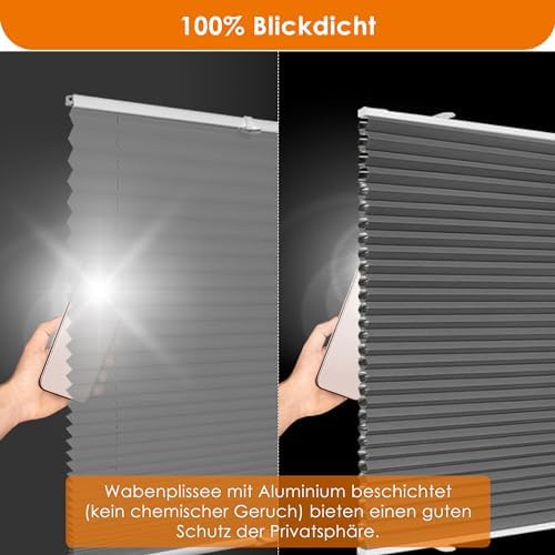 Genießen Sie eine perfekte Abdunklung und optimalen Blendschutz mit unserem hochwertigen Wabenplissee. Dank der eingebauten Aluminiumbeschichtung wird Ihr Raum vor direkter Sonneneinstrahlung geschützt, während gleichzeitig ein behagliches und gemütliches Ambiente geschaffen wird. Ideal für Heimkinos, Bäder, Schlafräume und Kinderzimmer – unser Plissee sorgt nicht nur für die gewünschte Dunkelheit, sondern fördert auch einen erholsamen Schlaf.