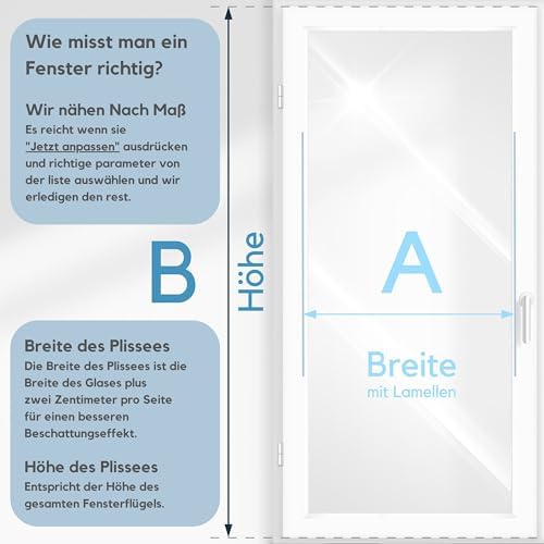 Um den besten Verdunkelungseffekt zu erzielen, empfehlen wir, bei der Breite die Glasscheibe um 2 cm zu erweitern. So bleibt kein Lichtspalt und Sie können Ihre Privatsphäre in vollen Zügen genießen. Bei einer Breite von 51 cm sollten Sie beispielsweise eine Bestellbreite von 55 cm wählen.